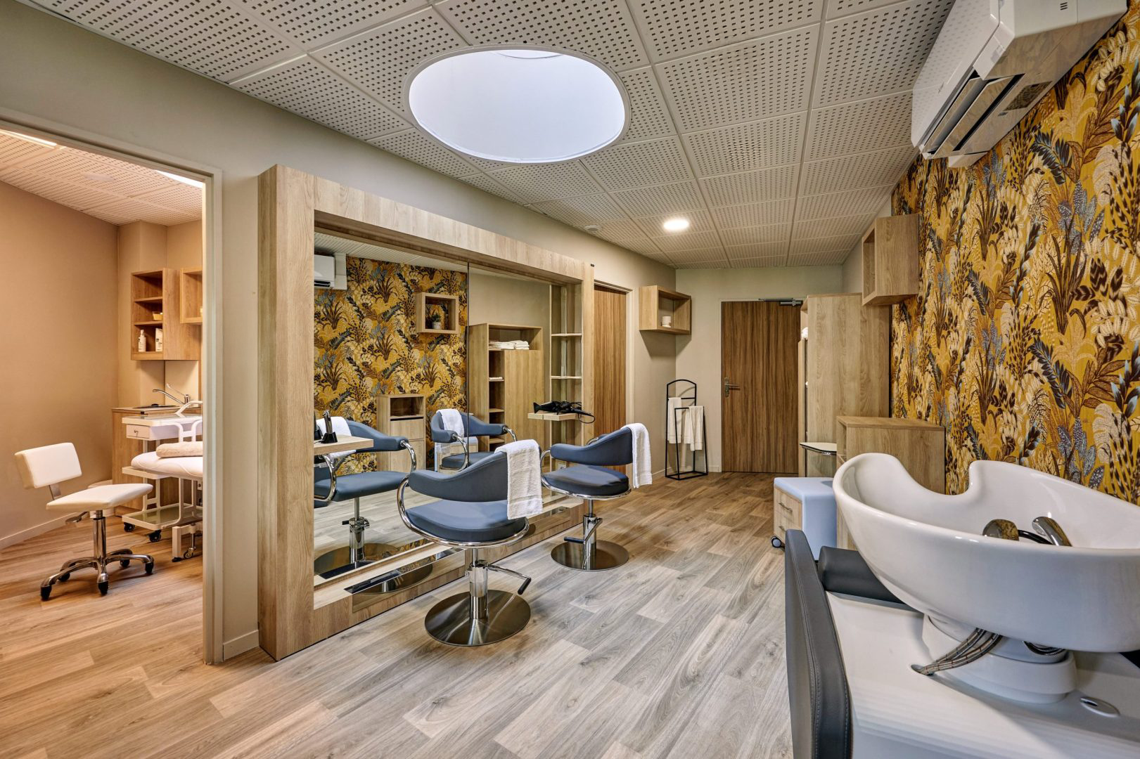 Dans les espaces communs, halls d’accueil, salons-détente, bibliothèques, cafés-bar, les ambiances sont pensées pour favoriser la rencontre, le sourire, le bien-être. Banquettes enveloppantes, éclairages indirects doux, larges vitrages donnant sur jardins ou cours verdoyantes.