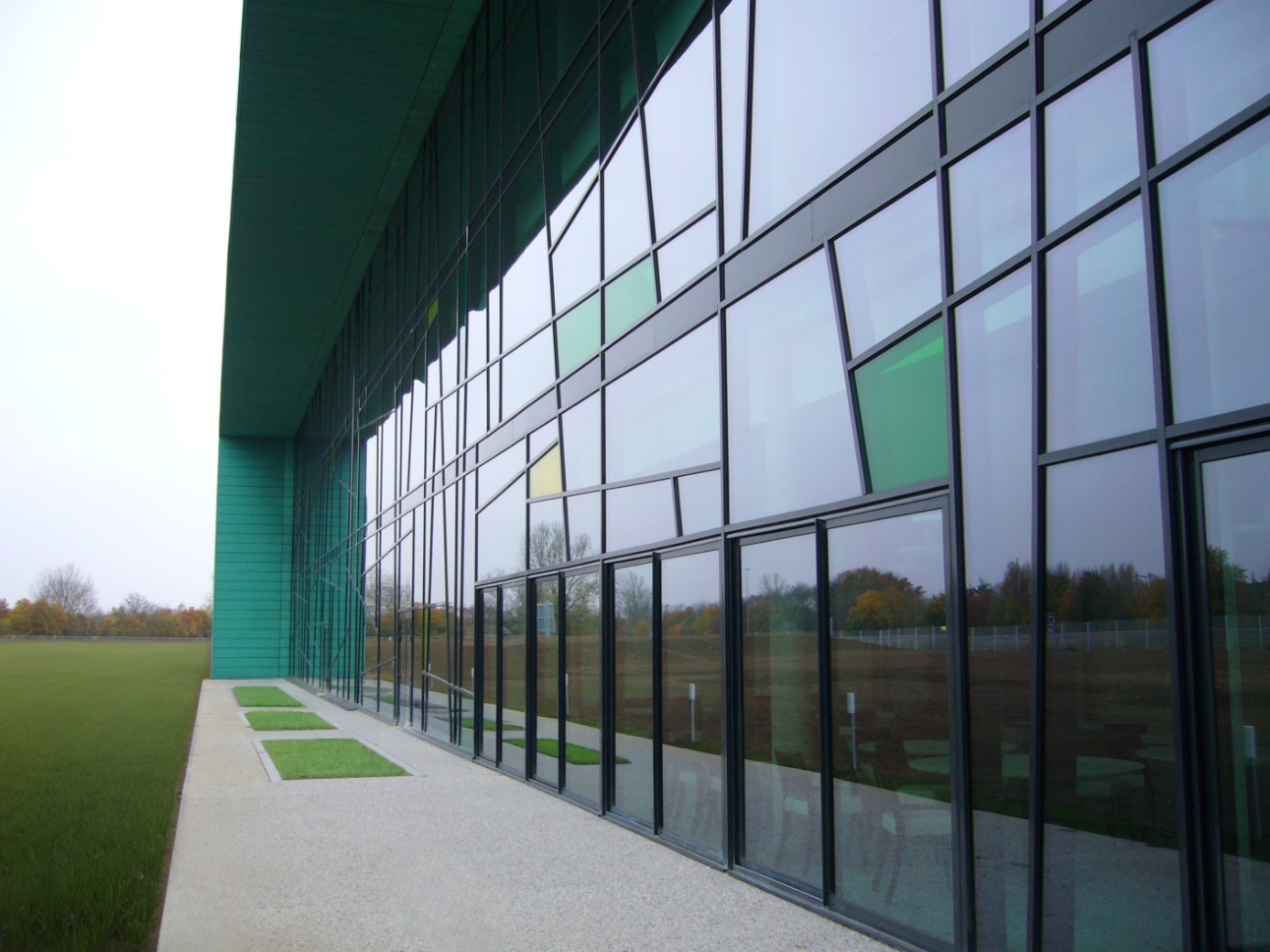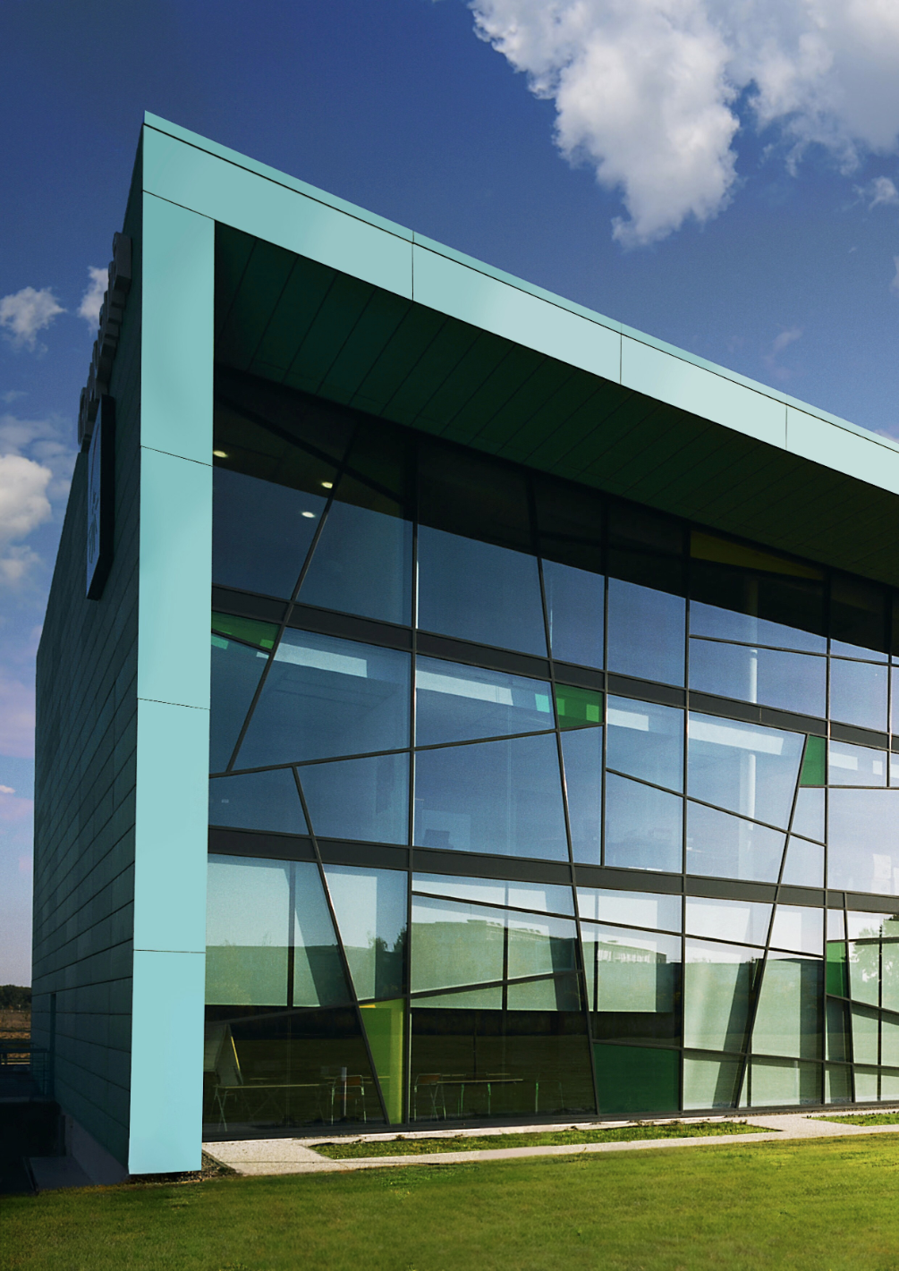 L’architecture du bâtiment s’appuie sur une écriture forte, en dialogue direct avec l’identité patrimoniale de la ville. La façade se distingue par un travail sur la lumière inspiré des vitraux de la cathédrale Notre-Dame de Chartres. Cette référence se traduit par une enveloppe associant des panneaux cuivrés pré-oxydés et un mur rideau vitrail, créant des jeux de transparence et de reflets qui animent les espaces intérieurs au fil de la journée.