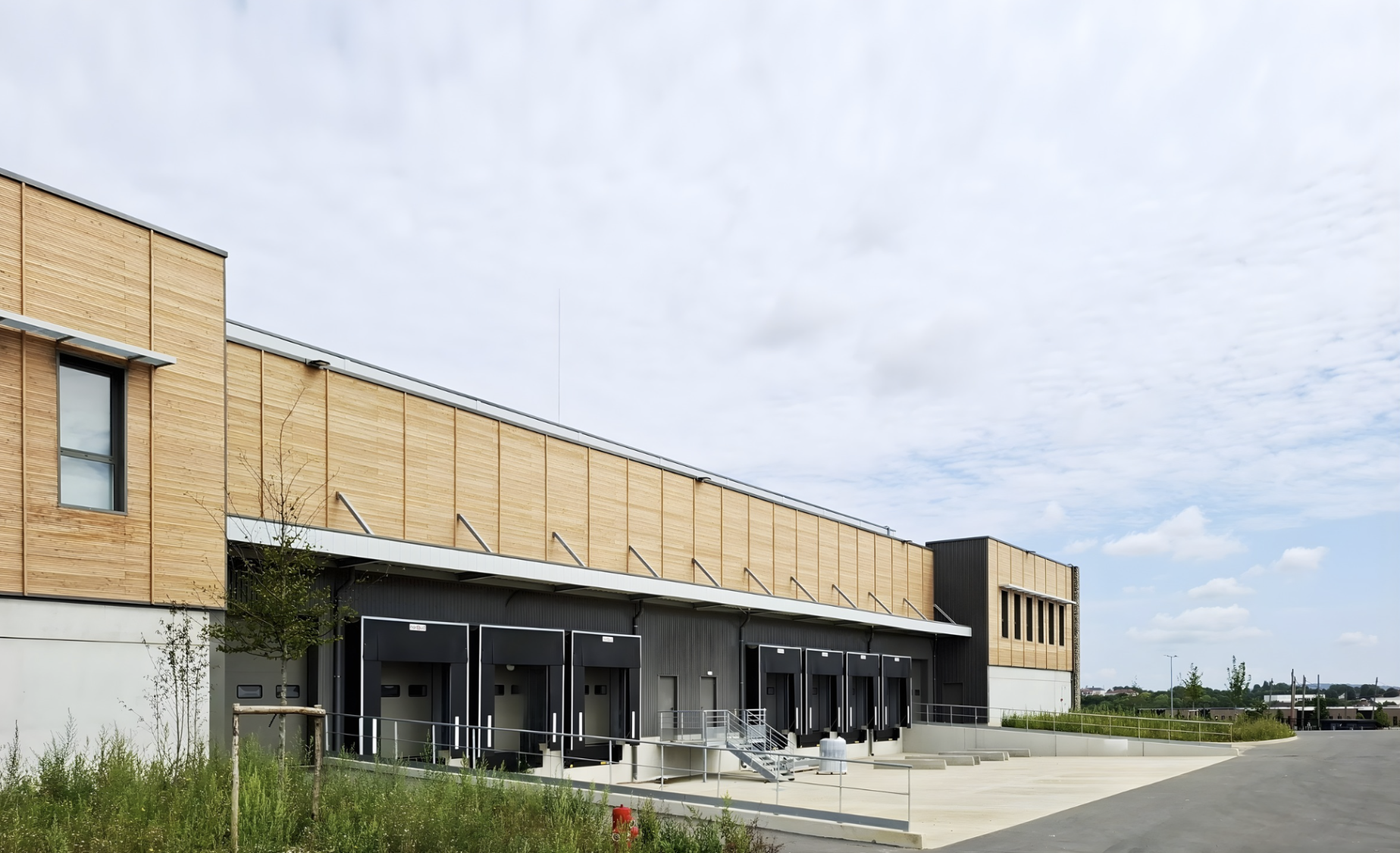 Les espaces extérieurs intègrent aires de manœuvre, stationnements et aménagements paysagers pensés dans une logique d’usage et de durabilité.